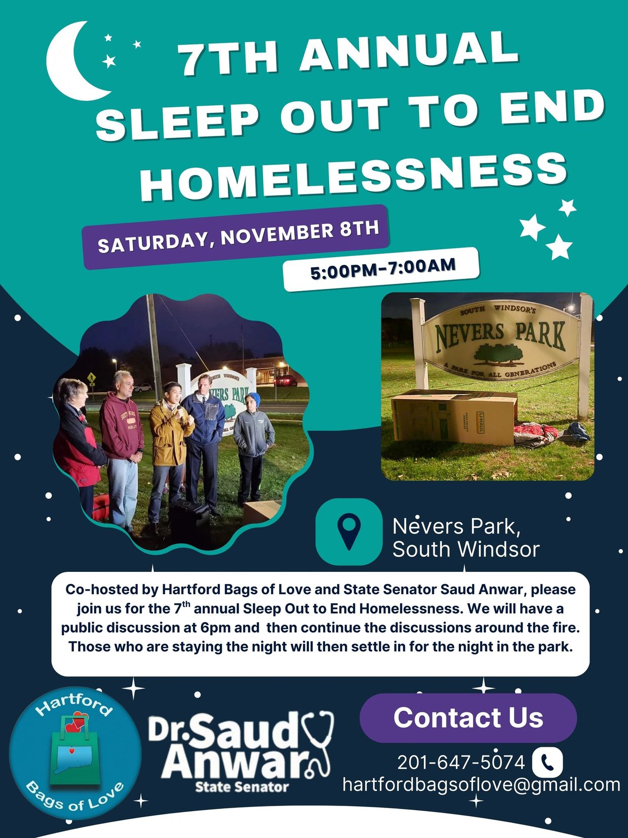 The Sleep Out to End Homelessness is an annual event held at Nevers Park in South Windsor. Through this event, we offer an opportunity to hear from currently and formerly homeless individuals, as well as from those who are working to fight for this cause.
